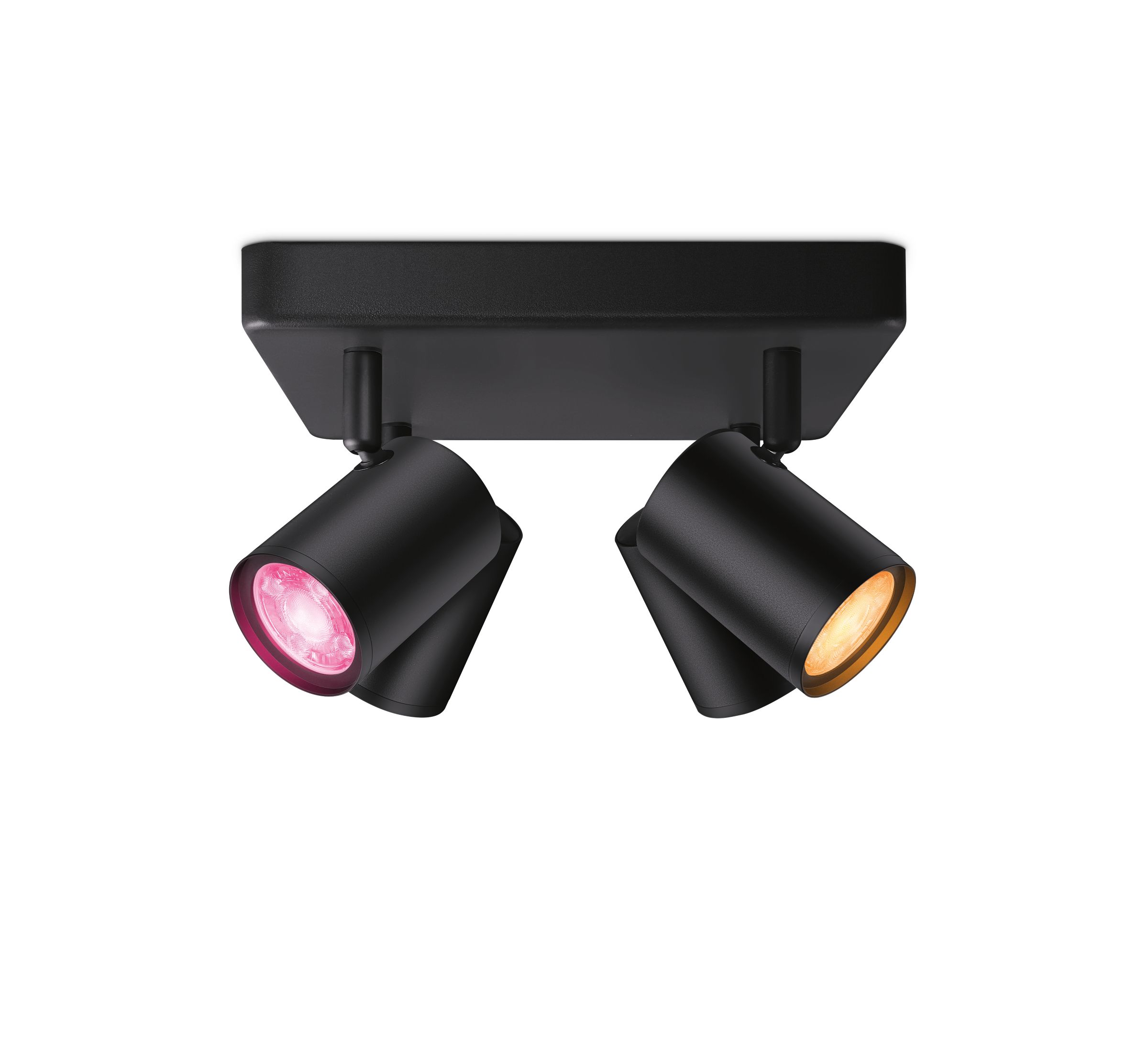 Es verfügt über vier einstellbare Aufbauspots, eine moderne, nicht ganz quadratische Deckenleuchte und jede Menge Leistung, um Deinen Raum in alle Richtungen mit Licht und Farbe zu fluten. Unsere Aufbauspots helfen Dir, für jede Aktivität die perfekte Licht-Szene auszuwählen.