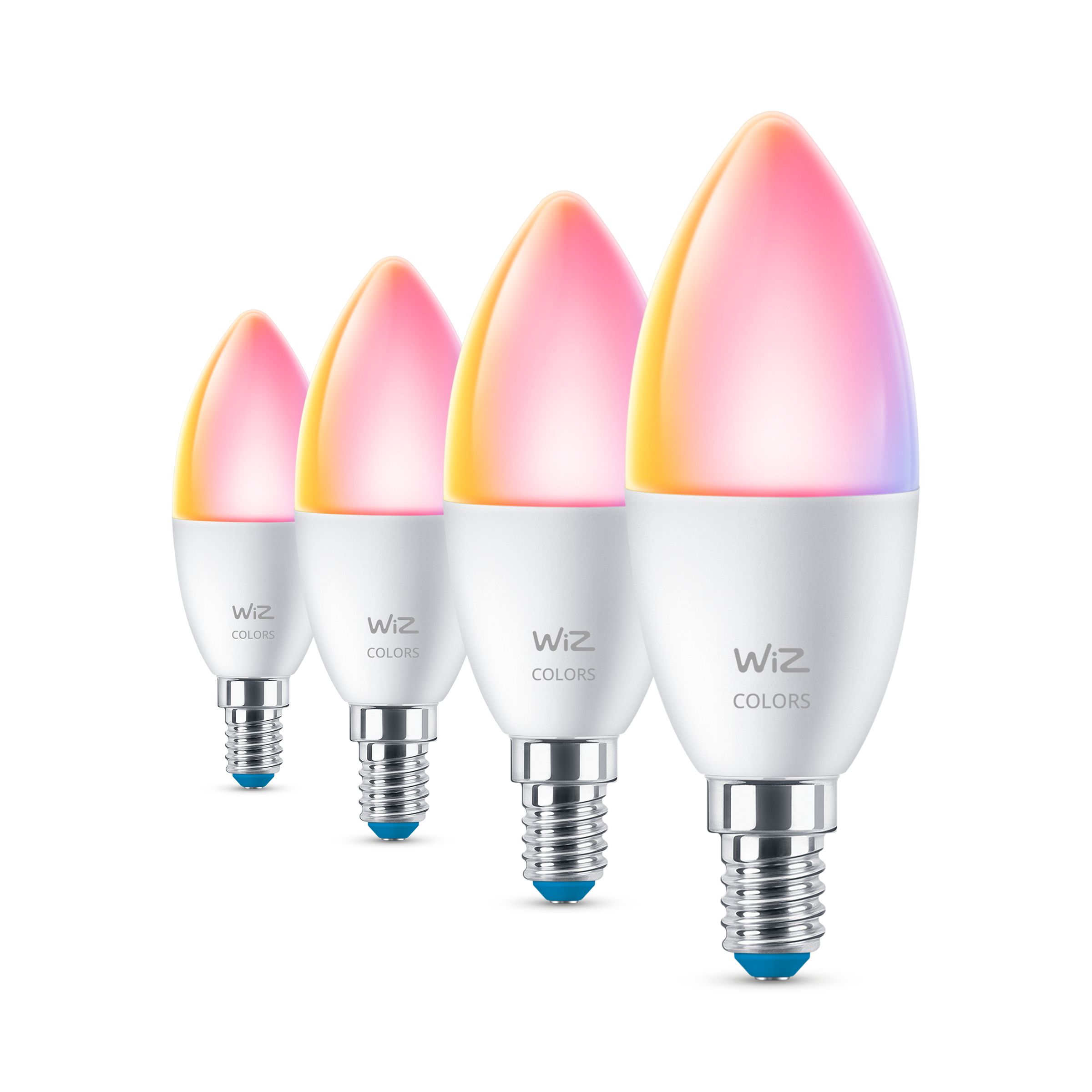 The WiZ LED full colour candle-shape bulb brings smart lighting to your daily living. Perfect for any decorative fixtures with an E14 medium base. Create the ambience of your choice with 16 million colours, as well as warm to cool white light. You can set schedules to turn lights on and off according to your daily or weekly routines, control with your smartphone or your voice and have remote access to your lights even when you're away. WiZ lights connect to your existing Wi-Fi, no additional hardware is needed.