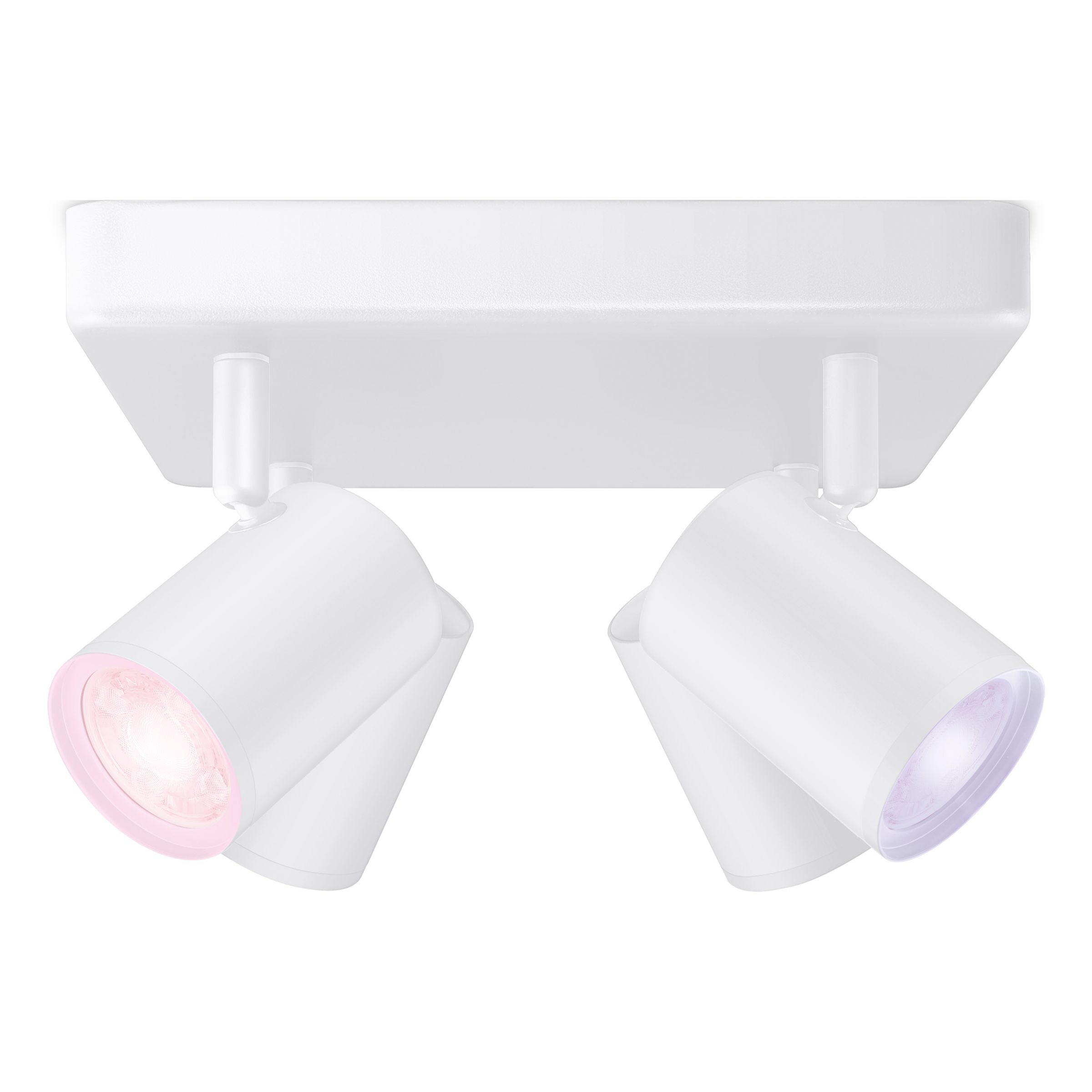 It has four adjustable built-on spots, a modern ceiling base shaped not-quite-like-a-square, and plenty of power to flood your room in all directions with light and colour. Our Built-on Spots fixture helps you choose the perfect light scene for every activity.