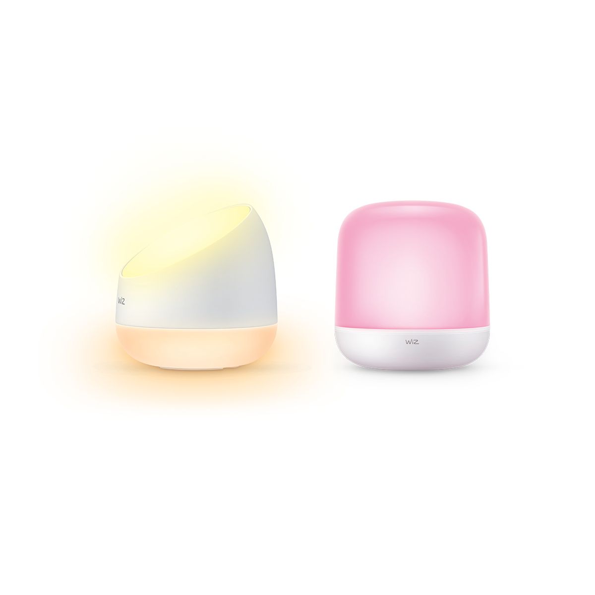 Bring smart light to any corner of your space with the WiZ Squire dual zone table lamp which casts colorful light onto the wall and the WiZ Hero table lamp which lets you bring colorful smart light to any corner of your living areas. Use with the WiZ app or your voice to dim and brighten or use preset light modes on Wi-Fi setups.