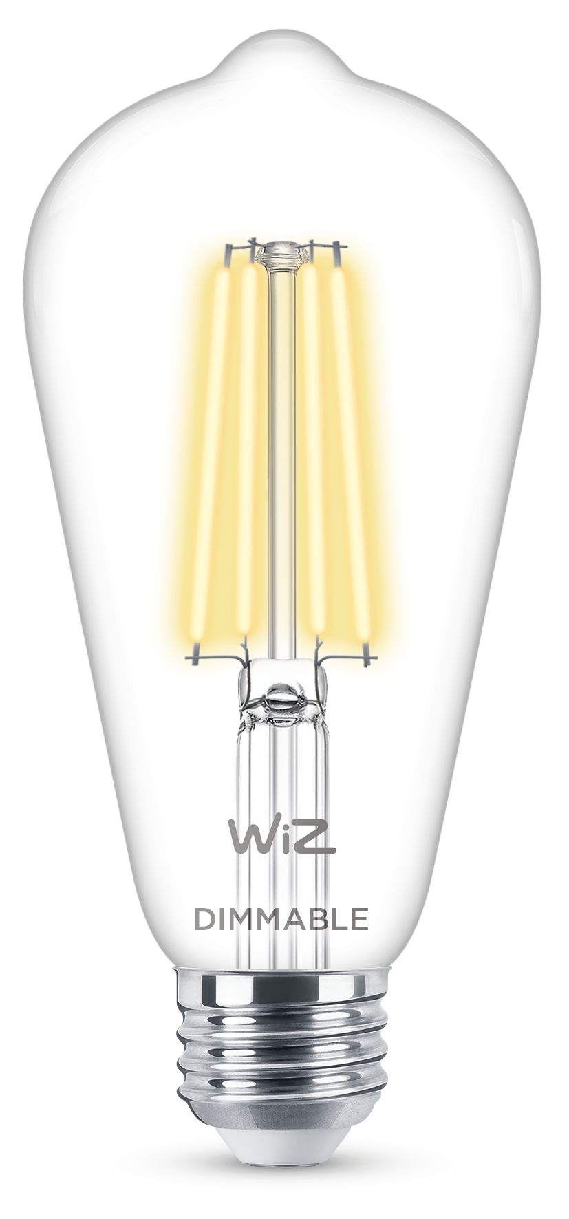 Disfruta más comodidad en tu vida diaria con esta luz vintage inteligente WiZ LED ST19. La apariencia clásica recubierta color ámbar es perfecta para las luminairas decorativas. Esta luz brinda una tonalidad blanca suave que se atenúa al nivel de brillo deseado mediante la aplicación o a través de tu voz mediante una bocina inteligente. Puedes establecer el horario para encender o apagar las luces según tus rutinas diarias o semanales, y accede de forma remota a las luces incluso cuando no estés en casa. Las luces WiZ se conectan al Wi-Fi existente, sin necesidad de hardware adicional.