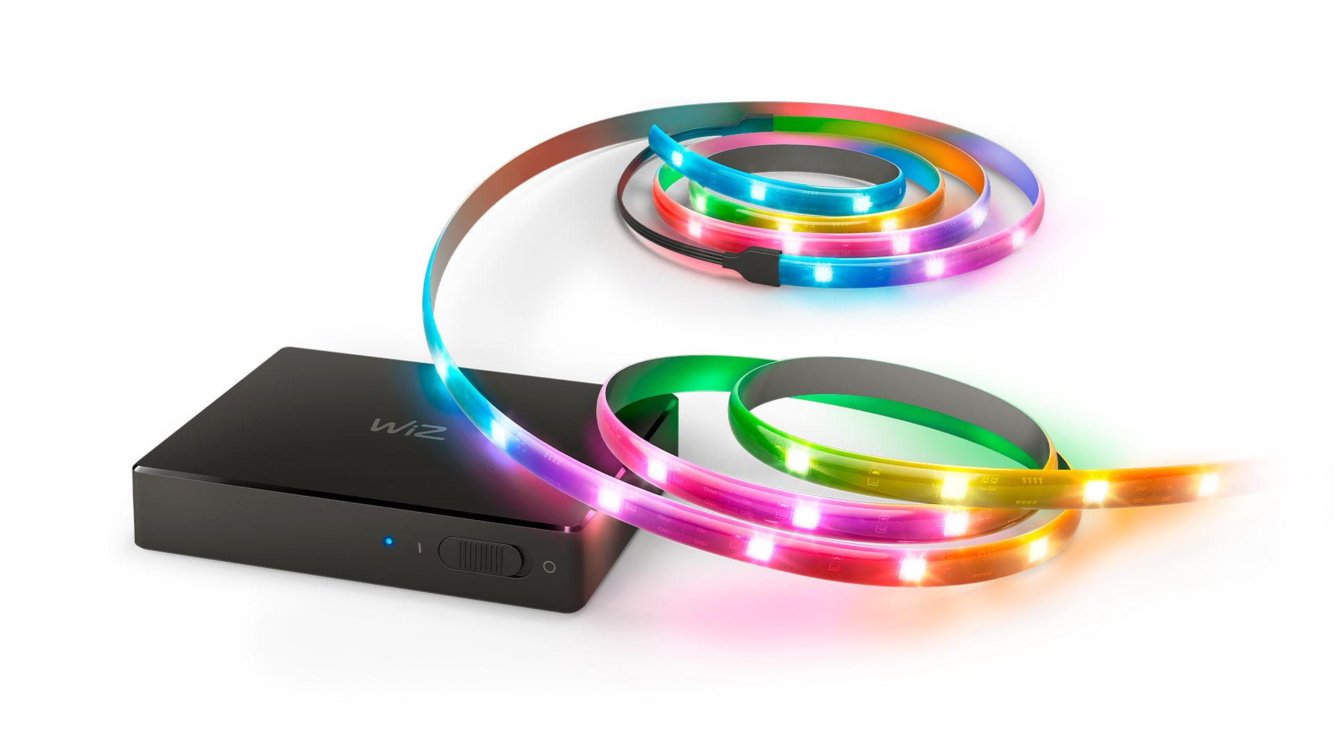 TV 화면의 색상을 실시간으로 투영하여 엔터테인먼트 경험을 한 단계 수준 높게 즐기세요 RGBIC 스트립은 영화, 게임, 음악 등에 맞춰 생동감 있는 색상을 조명 속도로 구현합니다. HDMI를 통해 간편한 설치와 정확한 색상 일치를 즐기세요. 스트리밍 스틱이나 게임 콘솔과 같은 HDMI 2.0 장치와 동기화하세요. Wi-Fi를 통해 원하는 만큼의 색상 지원 WiZ 조명을 연결하여 전체 공간에 걸친 효과를 구현하세요.